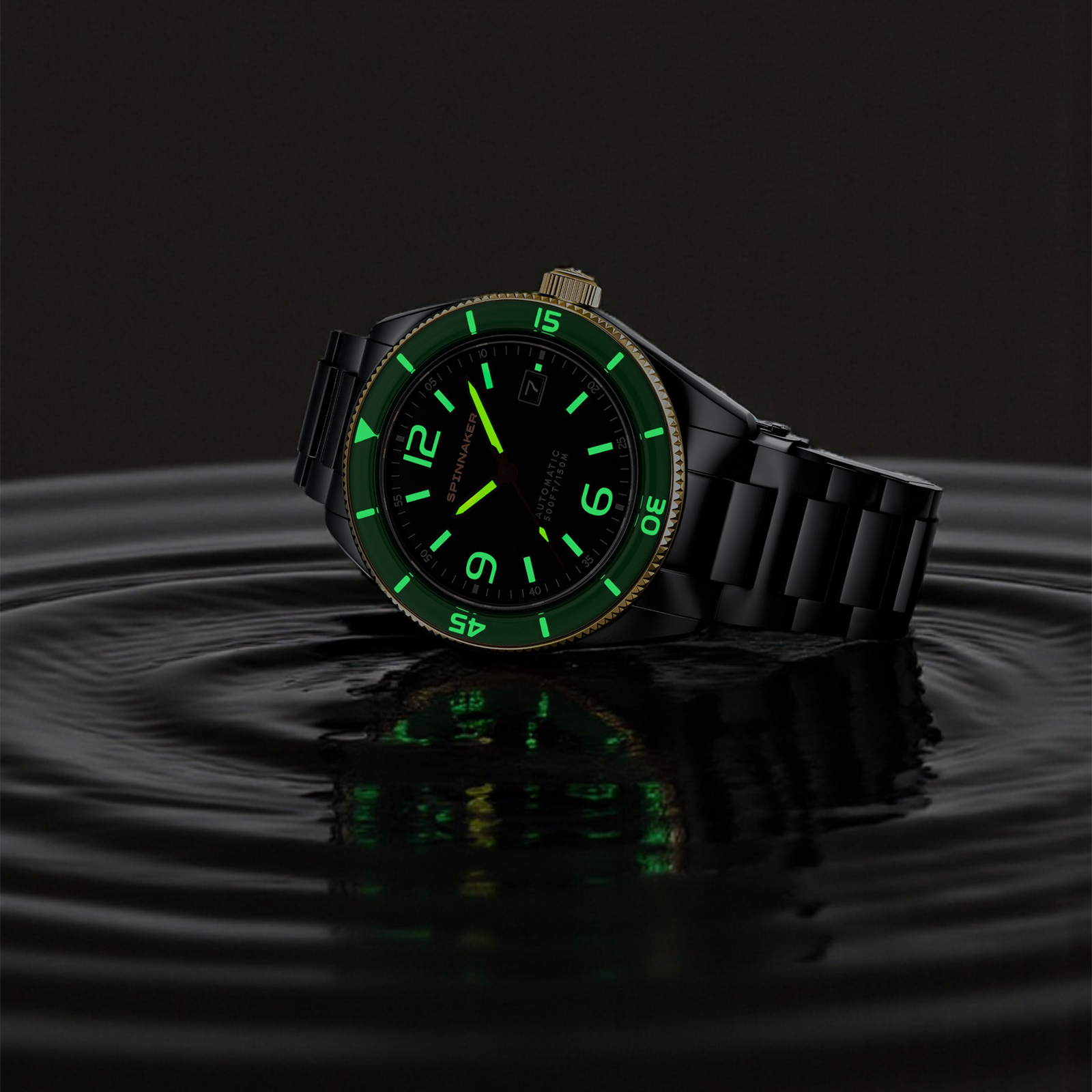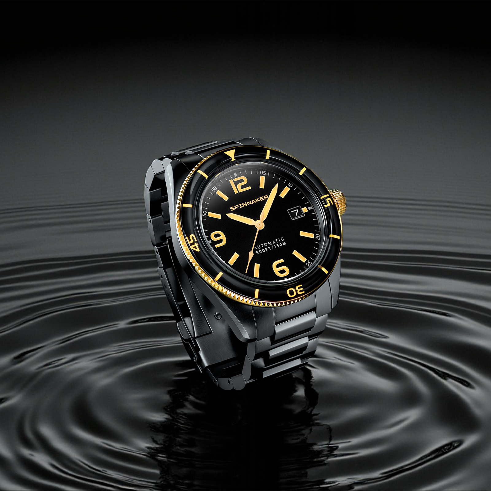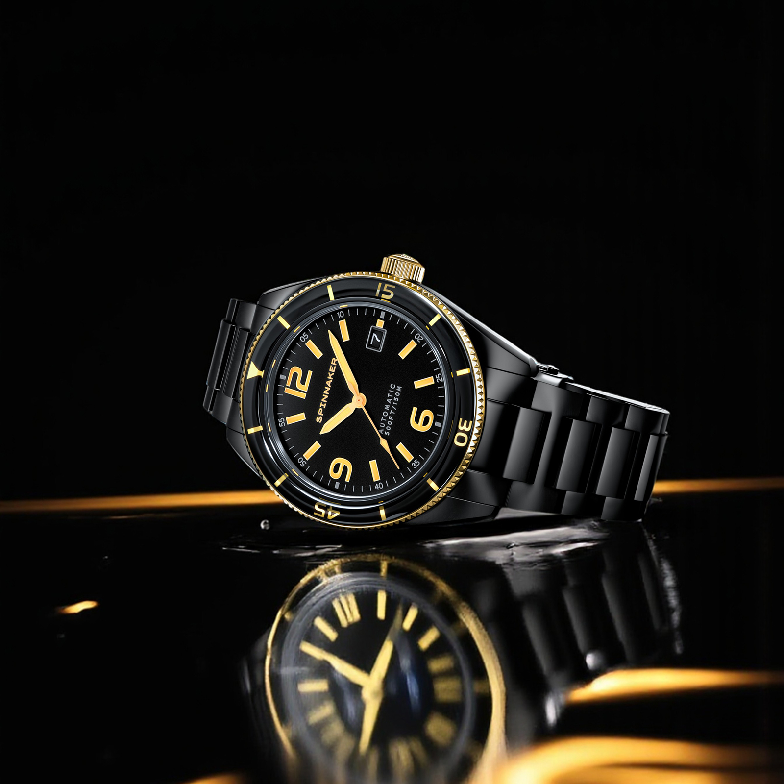 ブラック&ゴールド、そして輝きで再定義されたSPINNAKERの腕時計です。