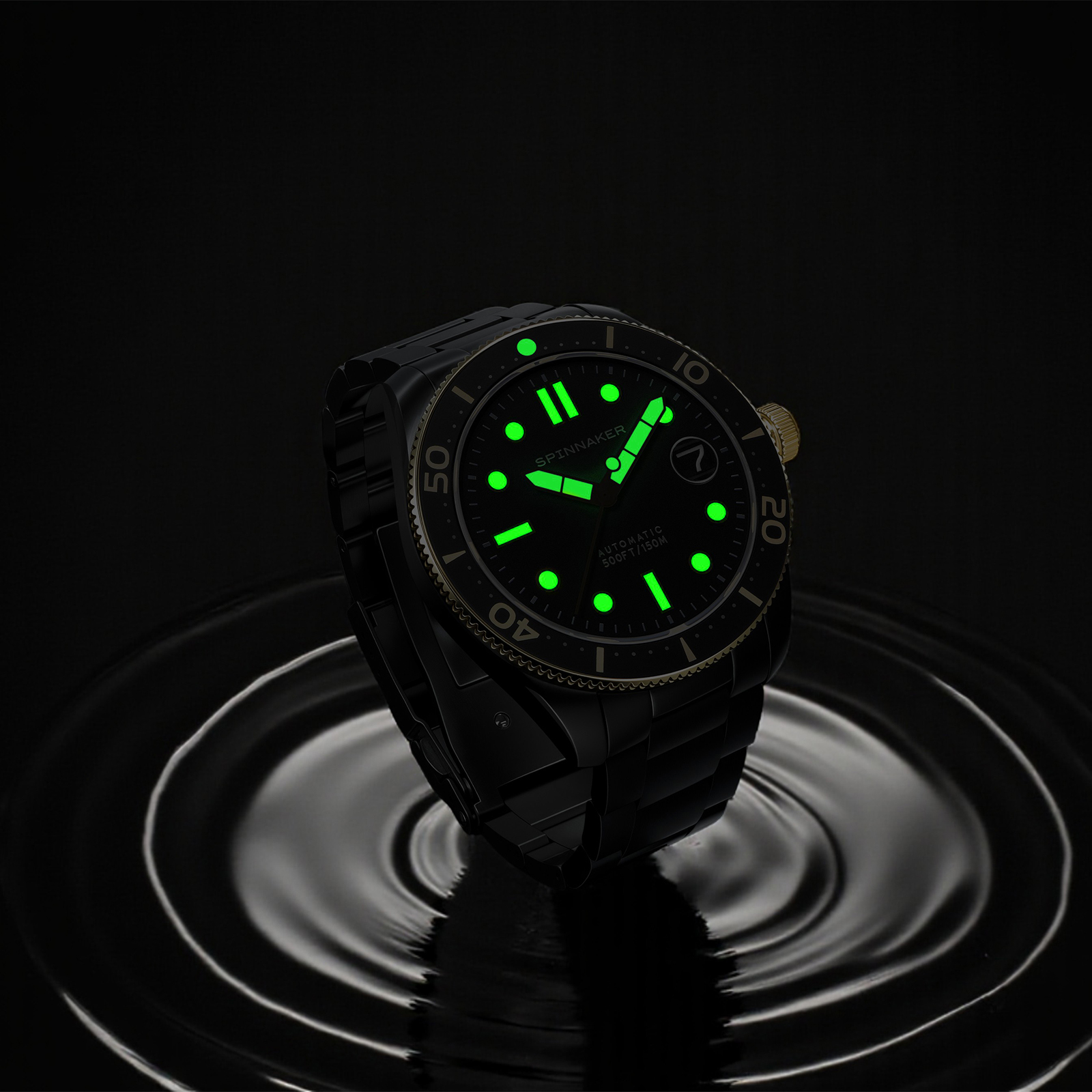 さらに、サファイアクリスタルレンズ、スイス製の夜光塗料、15気圧防水の性能を備え、Spinnakerの航海の伝統に現代的なエッジを融合。昼も夜も航海する人々のために作られています。