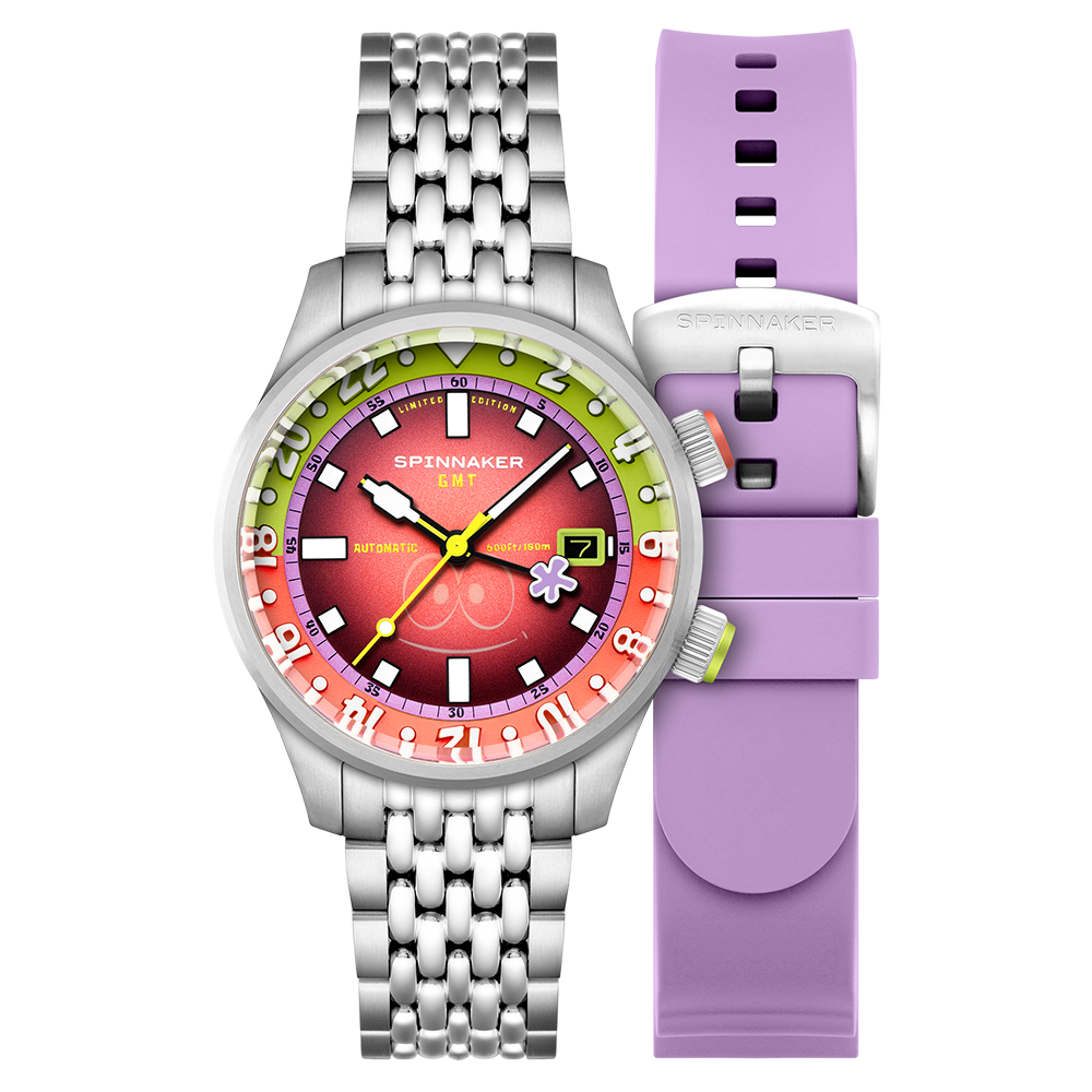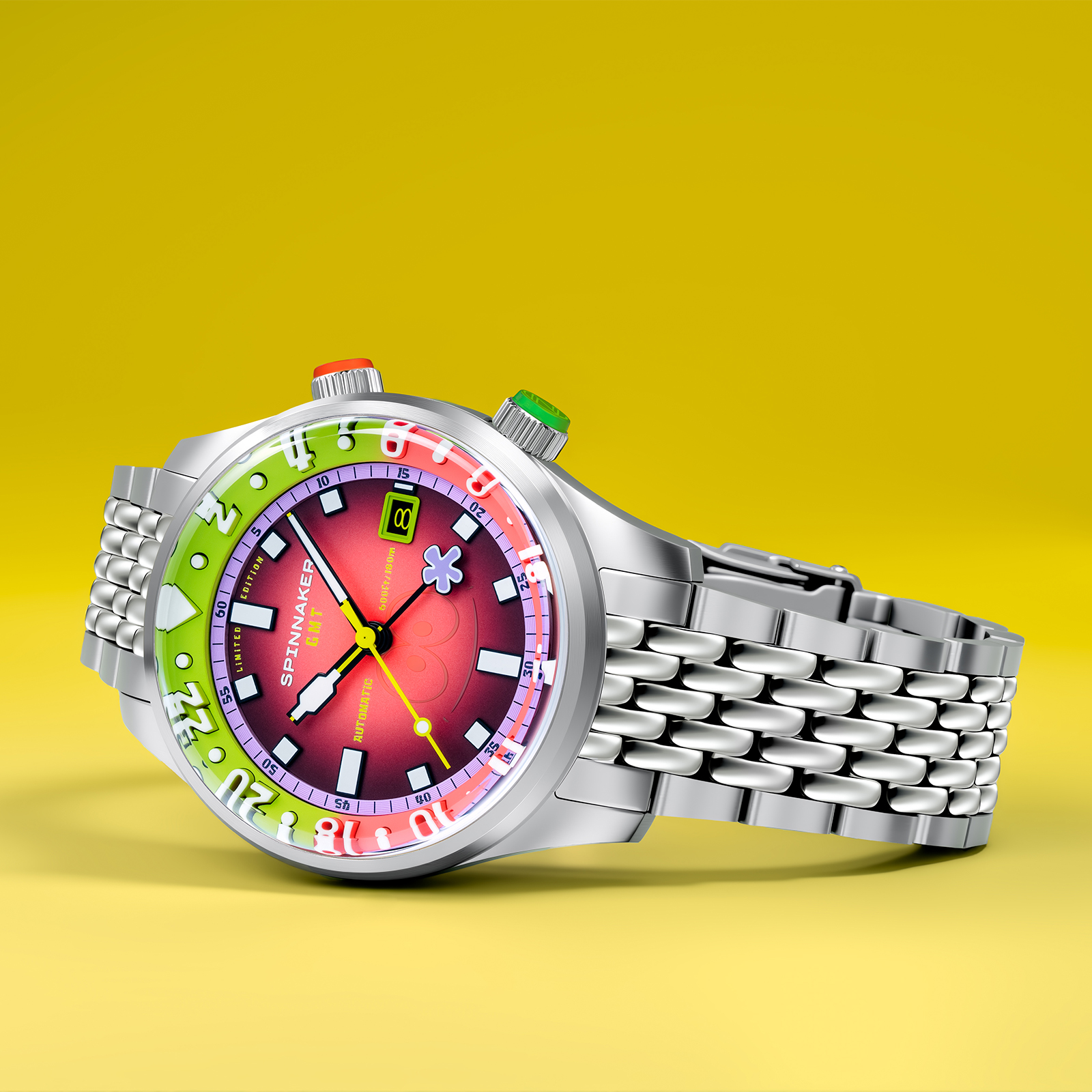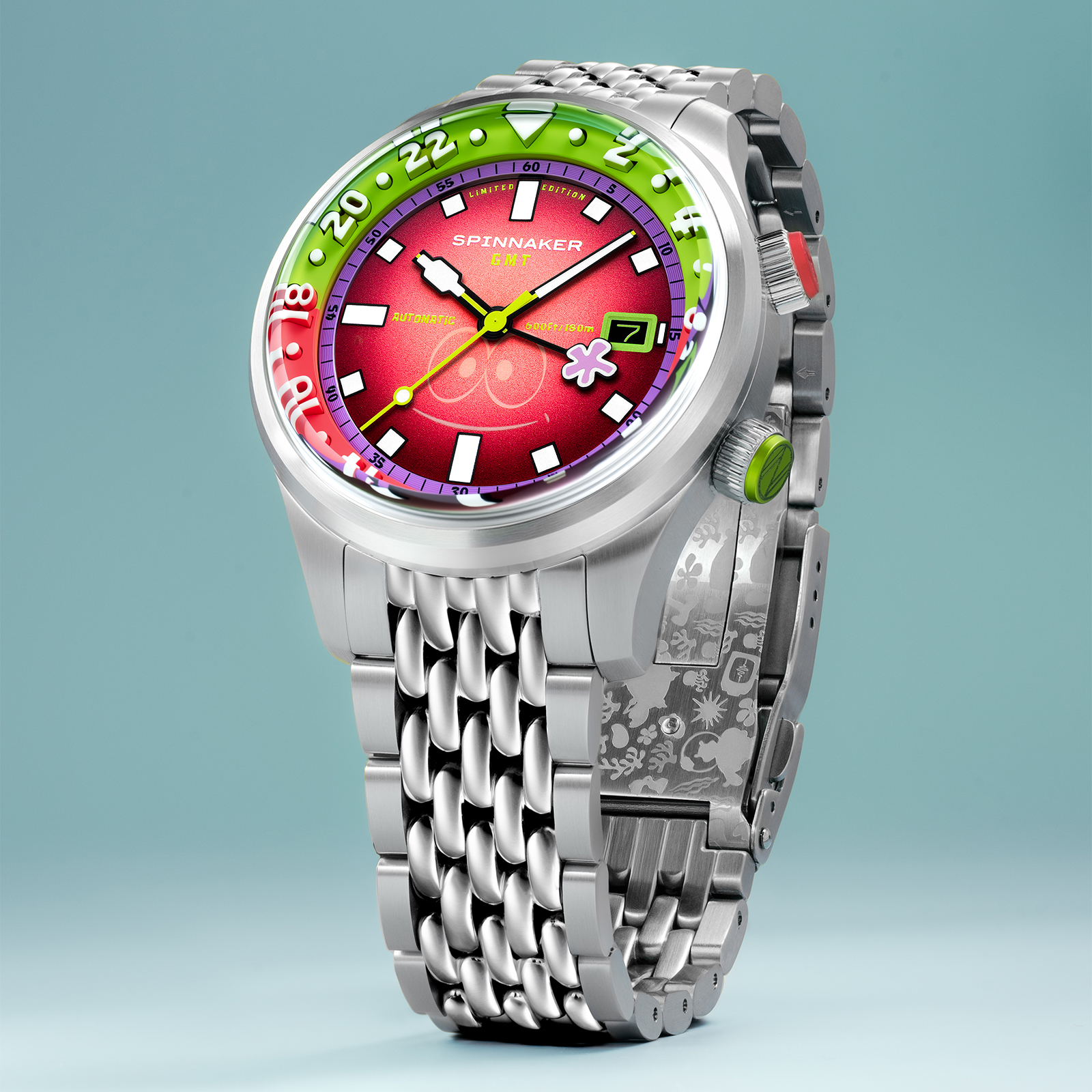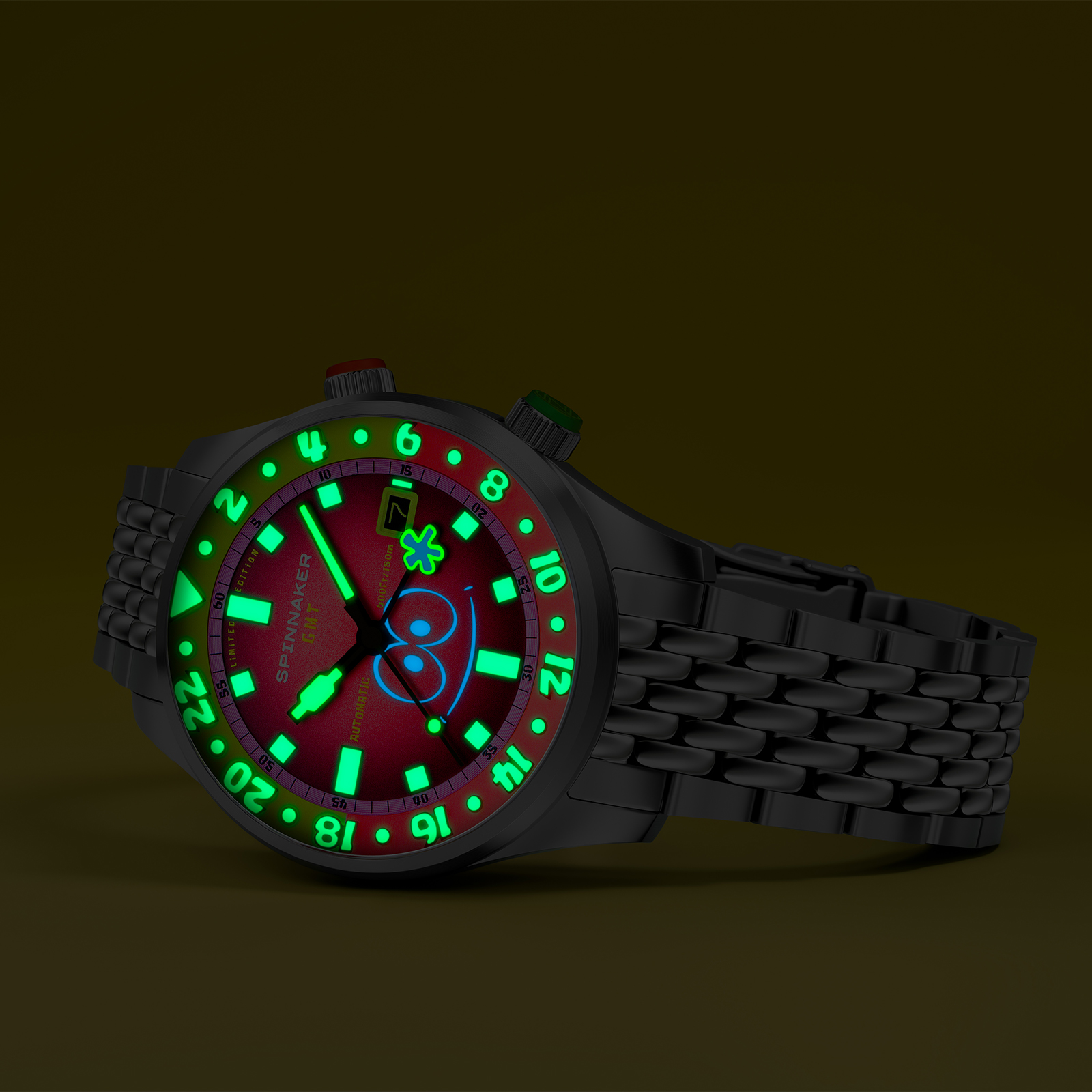 「イマジネーション!」を大切にするスポンジ・ボブの理念を、スピニカーは蓄光塗料とGMT針によって表現。